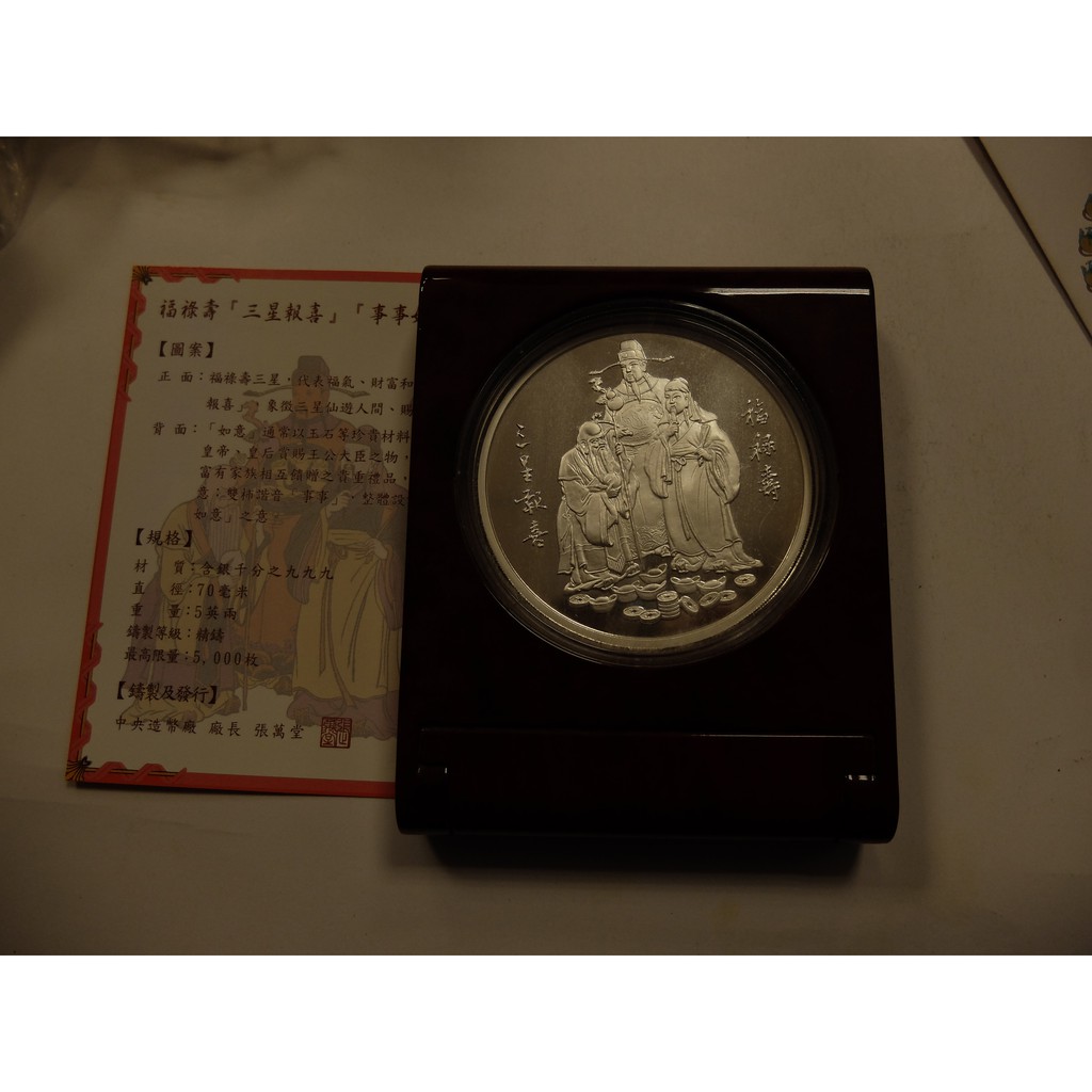 中央造幣廠福祿壽三星報喜事事如意大銀章5盎司原盒證如圖 蝦皮購物